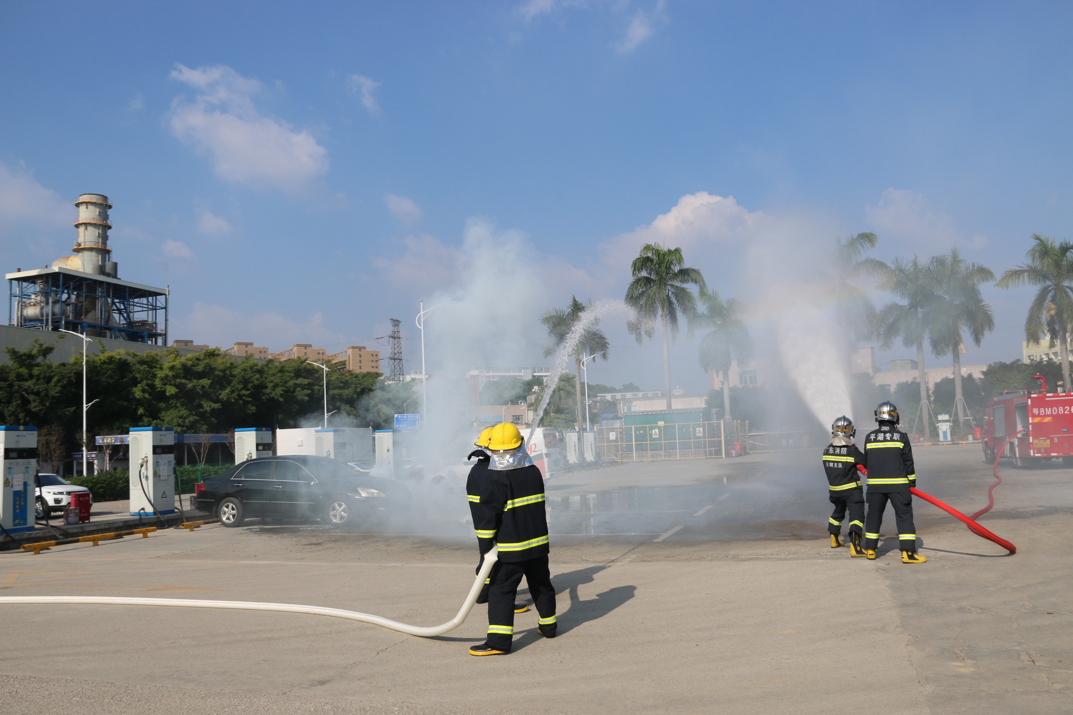本次演练模拟深圳钰湖充电站正在充电的汽车突然冒烟发生火灾,在应急总指挥的统一指挥协调下,第一时间启动《火灾事故应急预案》Ⅱ级响应程序,组织应急救援队伍进行扑救,最终成功扑灭火势,最大限度地减轻事故造成的损失,保障了人员生命和财产安全。