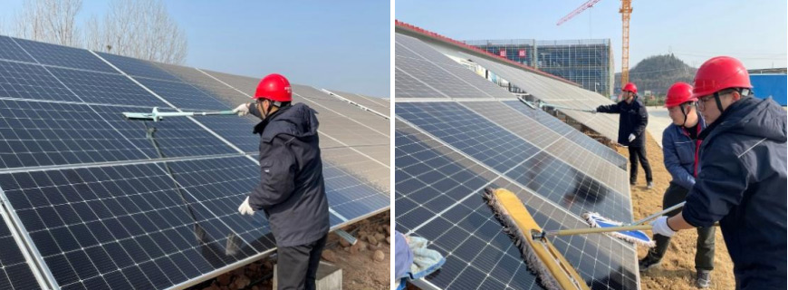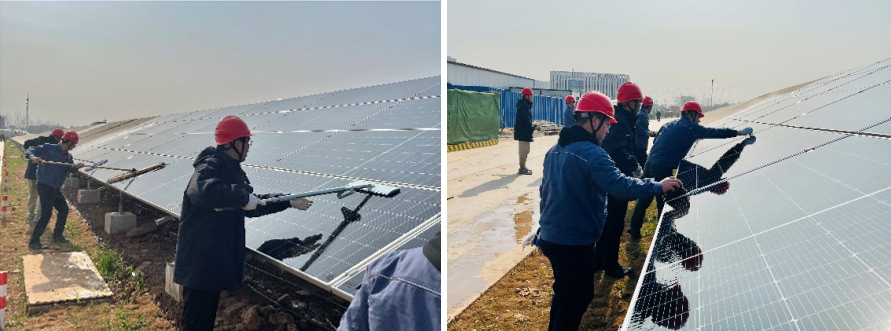 为落实见效二十大学习成果,彰显新时代京宜新风尚,京宜热电以“弘扬雷锋精神 建功三个京能”为主题开展了光伏板清洁活动,利用周末休息时间对小溪塔热电联产工程现场共计694块光伏板进行了全面、深度的清洗。