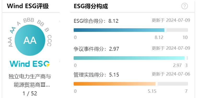 近日,sunbet申搏荣膺Wind ESG评级AA级殊荣,综合得分在被评组的52个独立电力生产商与能源贸易商中名列第一。凭借在环境、社会和公司治理(ESG)方面的卓越表现,sunbet申搏已经连续三年荣获Wind ESG评级AA级荣誉,彰显了公司在可持续发展领域的优秀表现。