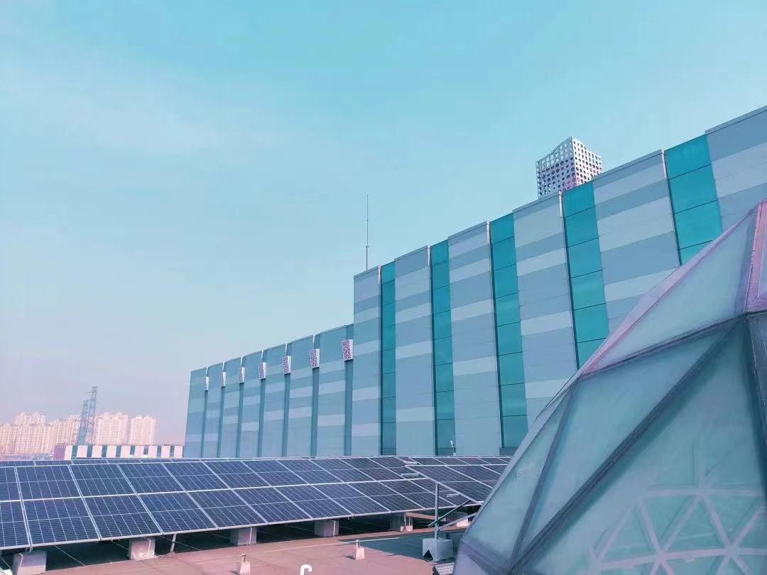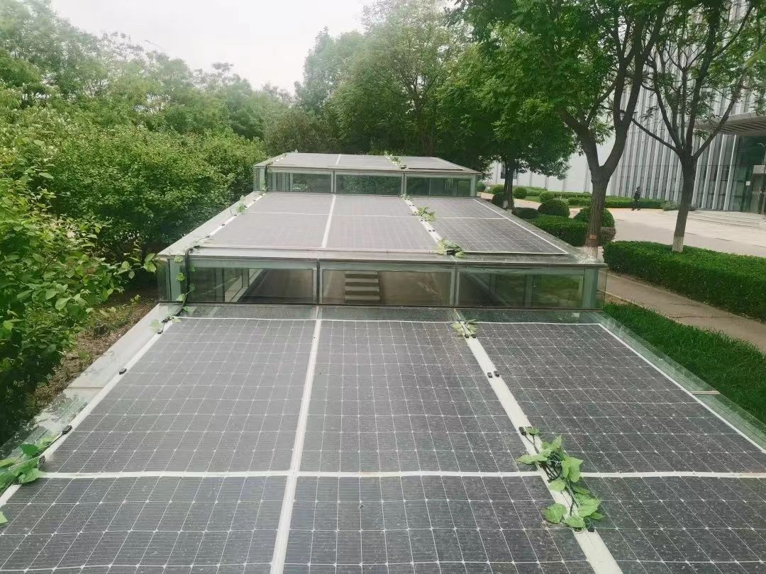 在京西热电厂内分布式光伏一期项目中,大胆尝试、勇于创新,在保安岗亭、循环水排水车间玻璃棚屋顶安装轻质光伏组件,取得了良好的发电和装饰效果。c