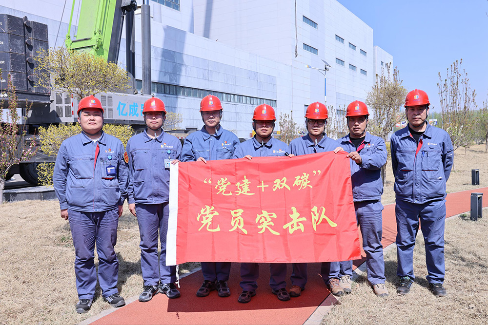 项目建设现场,"党员突击队"旗帜迎风飘扬。公司党总支持续推动“1+3+N+1”“党建+双碳”工作体系,成立烟气余热深度利用项目工作小组,积极促进党建与生产工作深度融合。第三党支部将“党建+余能转化”项目列为重点工作任务,划定余热锅炉区域为党员责任区,支部全体党员签订“我为双碳做贡献”承诺事项,根据项目进度制订详细目标任务及党员职责分工,进一步发挥党支部战斗堡垒作用,确保项目按期保质推进。