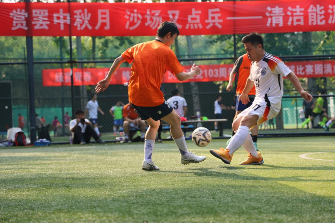 此次足球赛本着友谊第一,比赛第二的原则,赛前球员们都进行充分的热身准备,慢跑、拉伸、赛前战术布置,为比赛做好充足准备。随着裁判员的开赛哨声一响,双方球员迅速进入比赛状态,动作迅速而充满力量,传球精准、带球灵动、断球果决、射门凌厉,完美展现出严密的战术布局和默契的团队协作,紧张激烈的博弈、你来我往的攻防,将现场的比赛氛围推向一个又一个高潮。