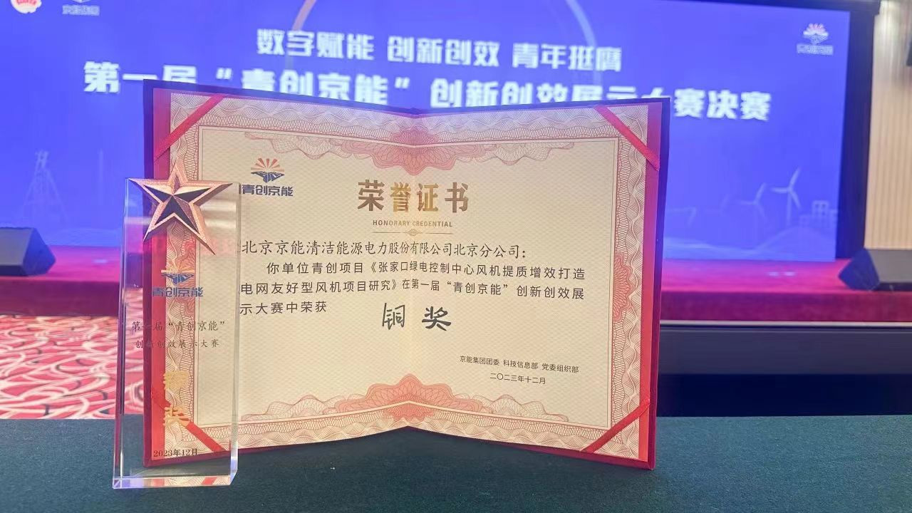 12月23日,京能集团首届“青创京能”创新创效展示大赛决赛在京举办。经过层层选拔,来自清洁能源北京分公司张家口绿电控制中心的青创团队突出重围,进入成果展示环节,最终荣获大赛铜奖。